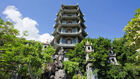Un escalier de 156 marches mène au sommet de Thuy Son, la seule accessible aux visiteurs qui comprend trois pics rocheux avec une disposition similaire aux étoiles de la Grande Ourse. Elle offre une vue panoramique époustouflante sur la campagne et le littoral et les autres montagnes de marbre.