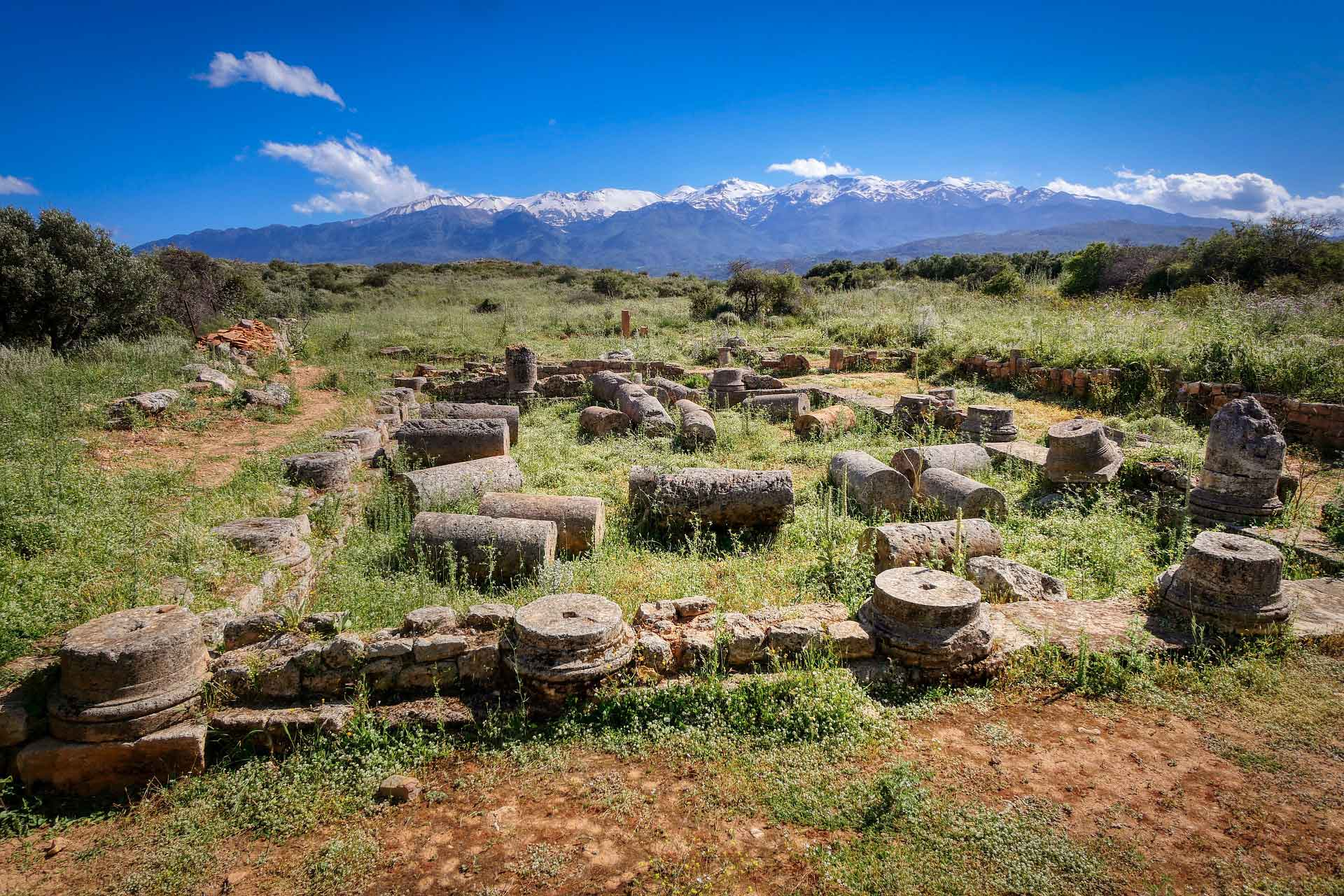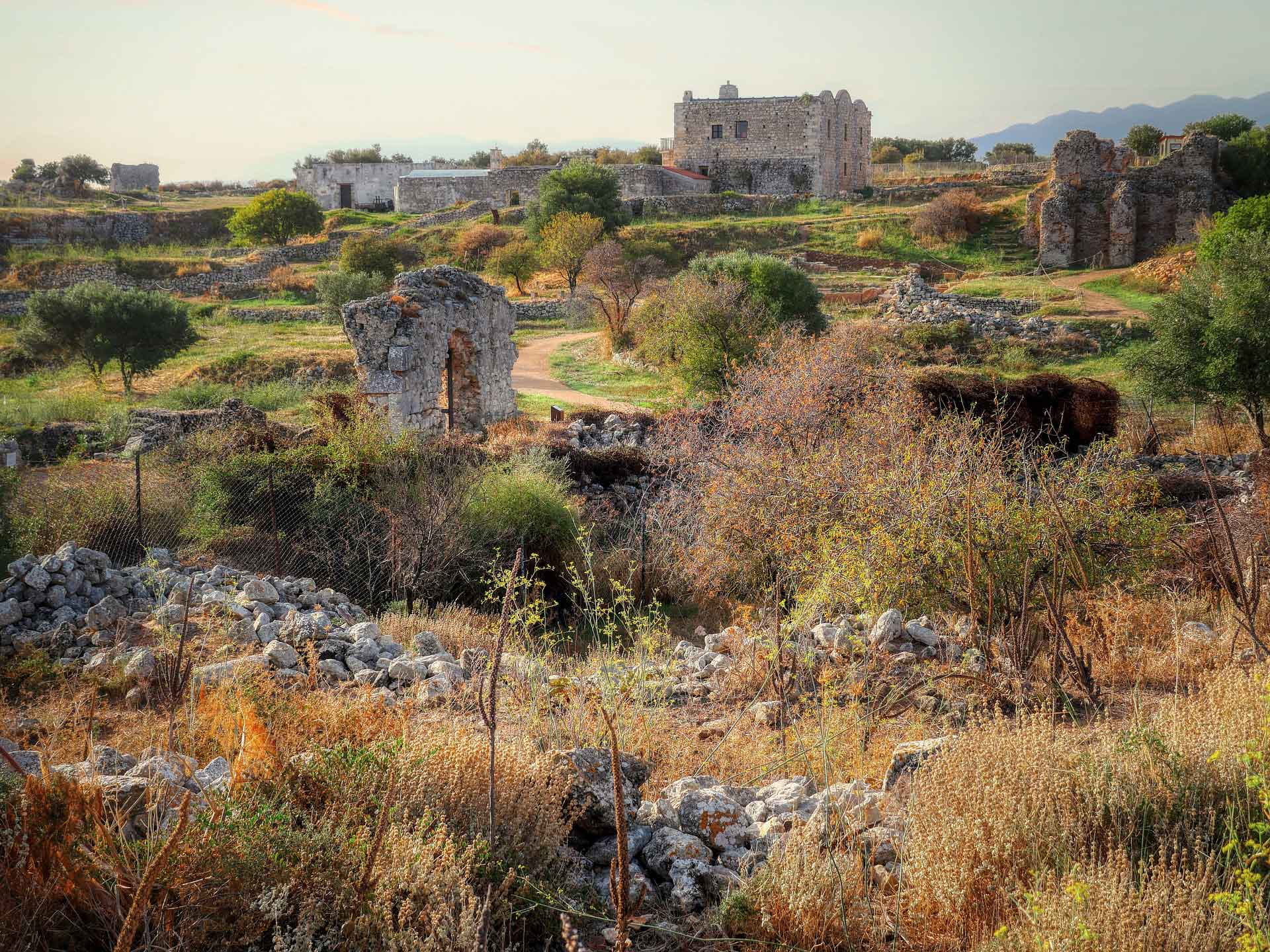 L’antique Aptera, fondée sur la colline Palekastro (200 m altitude), fut entourée d’un mur de fortification de 3480 m qui encerclait tout le sommet de la colline.