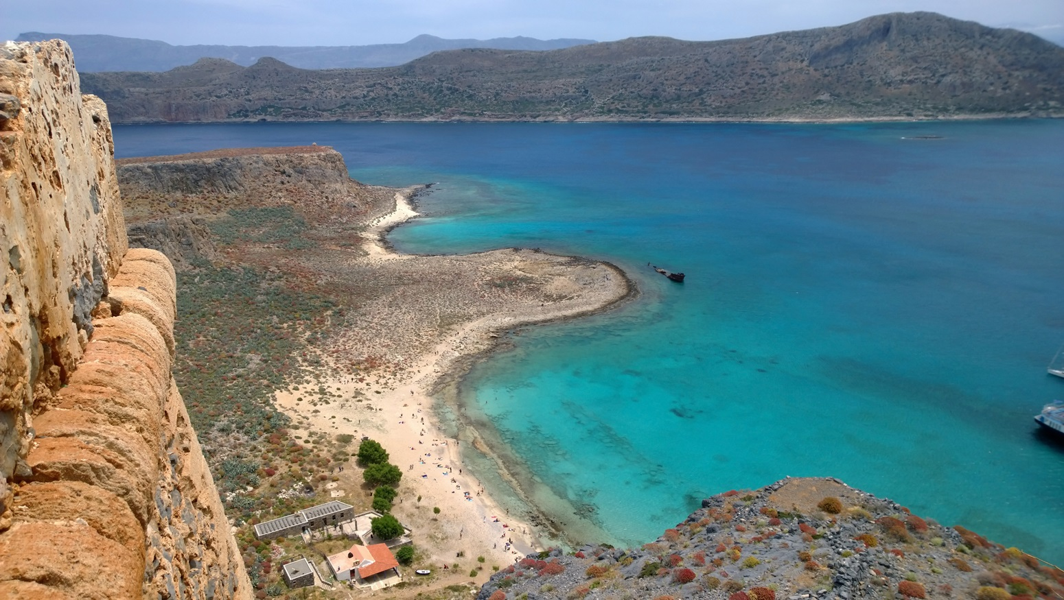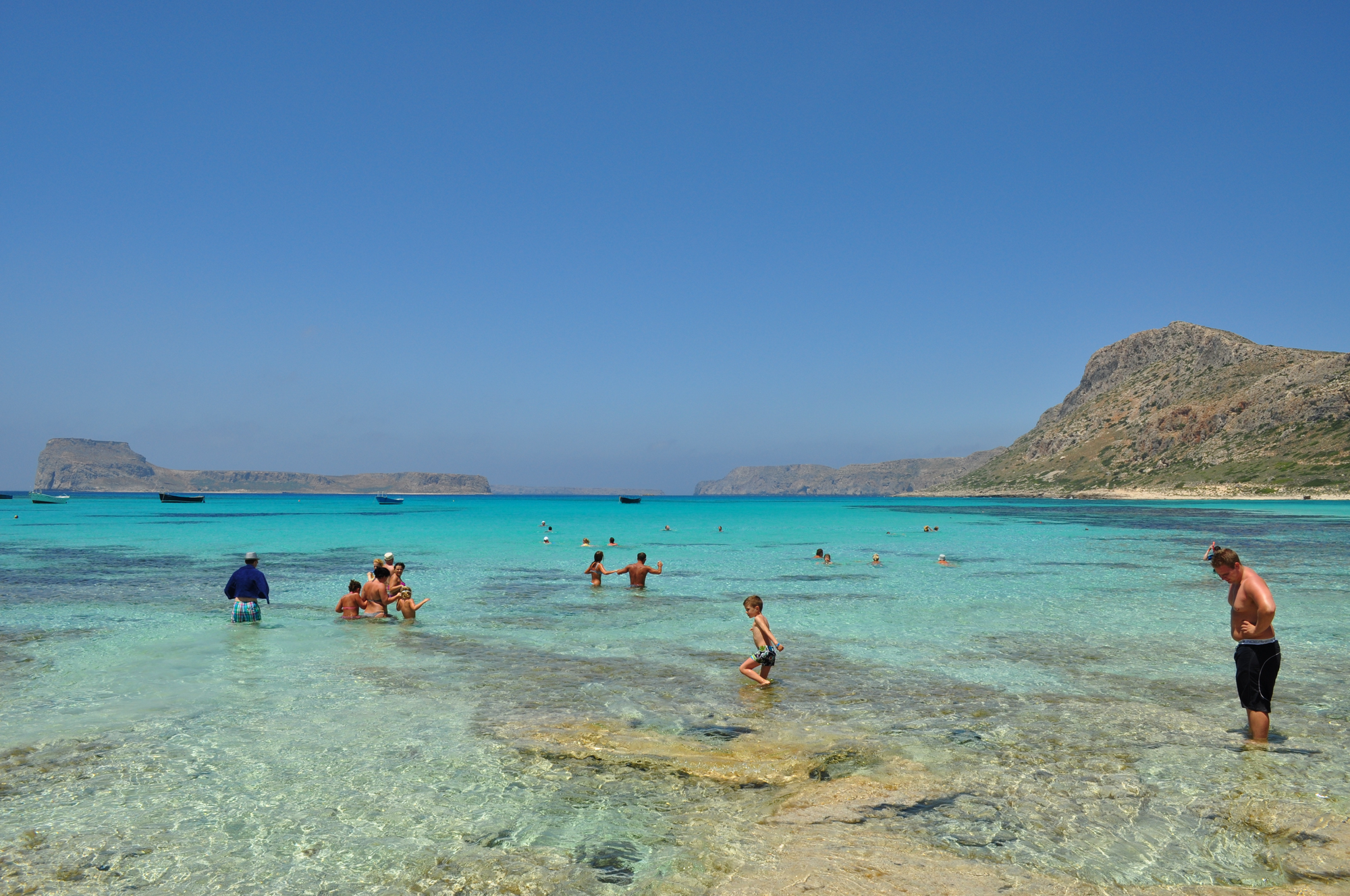 Le lagon de Balos est connue pour son eau turquoise et son sable rose. Il a des eaux peu profondes. La plage se trouve au dessous des montagnes Platiskinos.