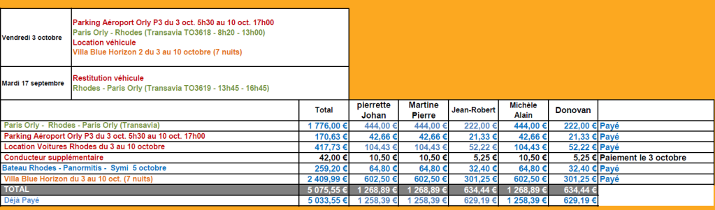 RÉCAPITULATIF DES FRAIS